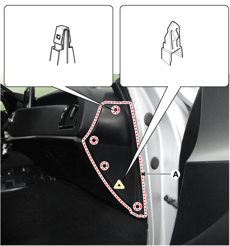 Remove the crash pad side cover [RH] (A) by using a remover.
