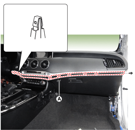 Separate the crash pad passenger side panel (A) after loosening the mounting