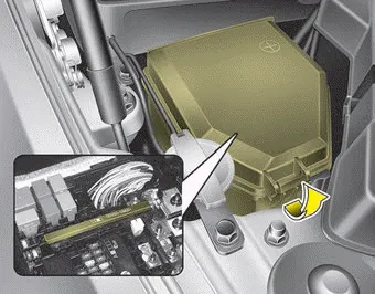 Always securely install the fuse panel cover in the engine compartment to protect against electrical failure which may occur from water contact. Listen for the audible clicking sound to ensure fuse panel cover is securely fastened.