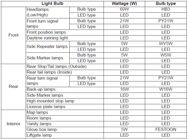 When replacing tires, use the same size originally supplied with the vehicle. Using tires of a different size can damage the related parts or make them work irregularly.
