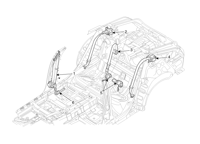 2. Rear seat belt retractor [RH] 3. Rear center seat belt retractor |