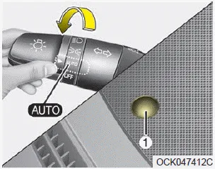 When the light switch is in the AUTO light position, the taillights and headlights will turn ON or OFF automatically depending on the amount of light outside the vehicle.