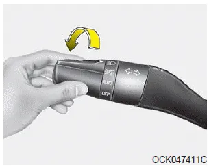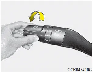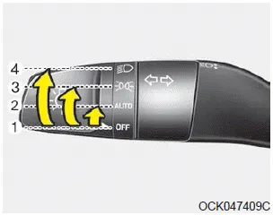 To operate the lights, turn the knob at the end of the control lever to one of the following positions: