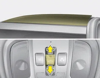 Never adjust the sunroof or sunshade while driving. This could result in loss of control and an accident that may cause death, serious injury, or property damage.