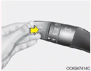To flash the headlights, pull the lever towards you. It will return to the normal (low beam) position when released. The headlight switch does not need to be on to use this flashing feature.