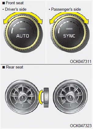 When turning the knob, the temperature will increase or decrease by 0.5°C/1°F. When set to the lowest temperature setting, the air conditioning will operate continuously.