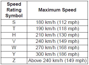 The chart below lists many of the different speed ratings currently being used for passenger vehicles. The speed rating is part of the tire size designation on the sidewall of the tire. This symbol corresponds to that tire's designed maximum safe operating speed.