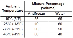 Check the antifreeze protection and coolant level at least once a year: at the beginning of the winter season, and before traveling to a colder climate.
