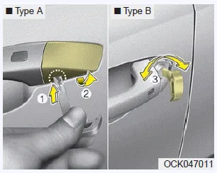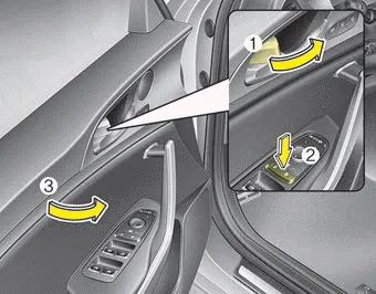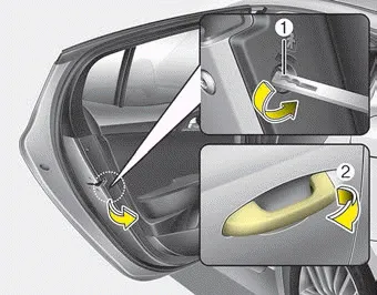 Even though the doors may be unlocked, the rear door will not open by pulling the inner door handle until the rear door child safety lock is unlocked.