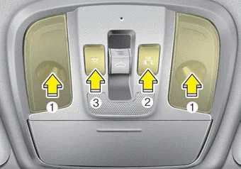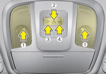 • Press the lens (1) to turn ON the map lamp.